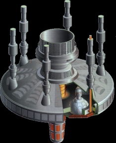 The Federation Starbase Deep Space Nine is powered by six fusion reactors, located at the base of the core section.