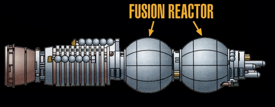 Numerous other 'auxiliary' fusion reactors channel power to ship's systems when the impulse and