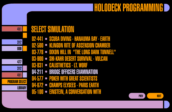 Holodeck The generic name, especially in use aboard Federation starships, for